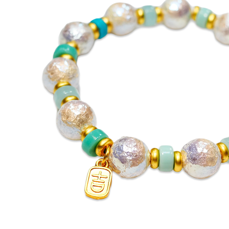 نور اللؤلؤ الشرقي الناعم يلتقي بجماليات الهندسة العربية، ليصنع تحفة طاقة أنيقة للمعصم.