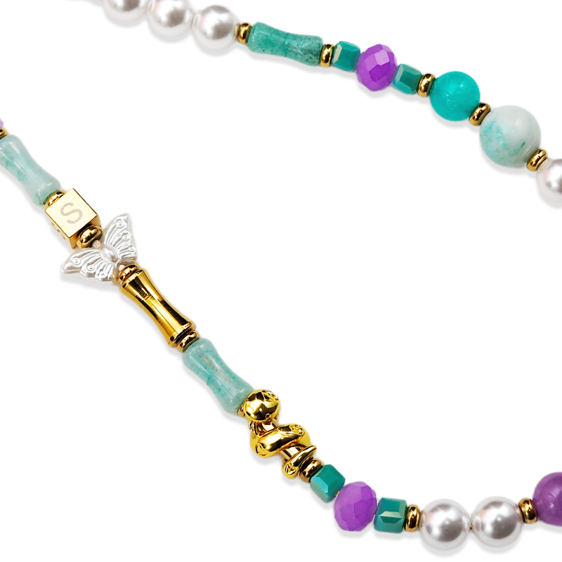 المادة: حجر طبيعي معالج، كريستال اصطناعي، عقيق أسود، لؤلؤ من راتنج ABS، فولاذ مقاوم للصدأ، سبيكة زنك مطلي بالذهب 18 قيراط، بوليستر