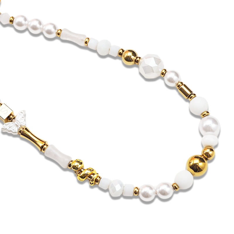 المادة: حجر طبيعي معالج، كريستال اصطناعي، عقيق أسود، لؤلؤ من راتنج ABS، فولاذ مقاوم للصدأ، سبيكة زنك مطلي بالذهب 18 قيراط، بوليستر