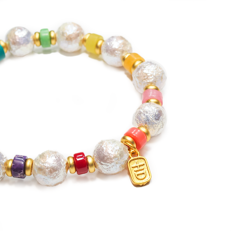 نور اللؤلؤ الشرقي الناعم يلتقي بجماليات الهندسة العربية، ليصنع تحفة طاقة أنيقة للمعصم.