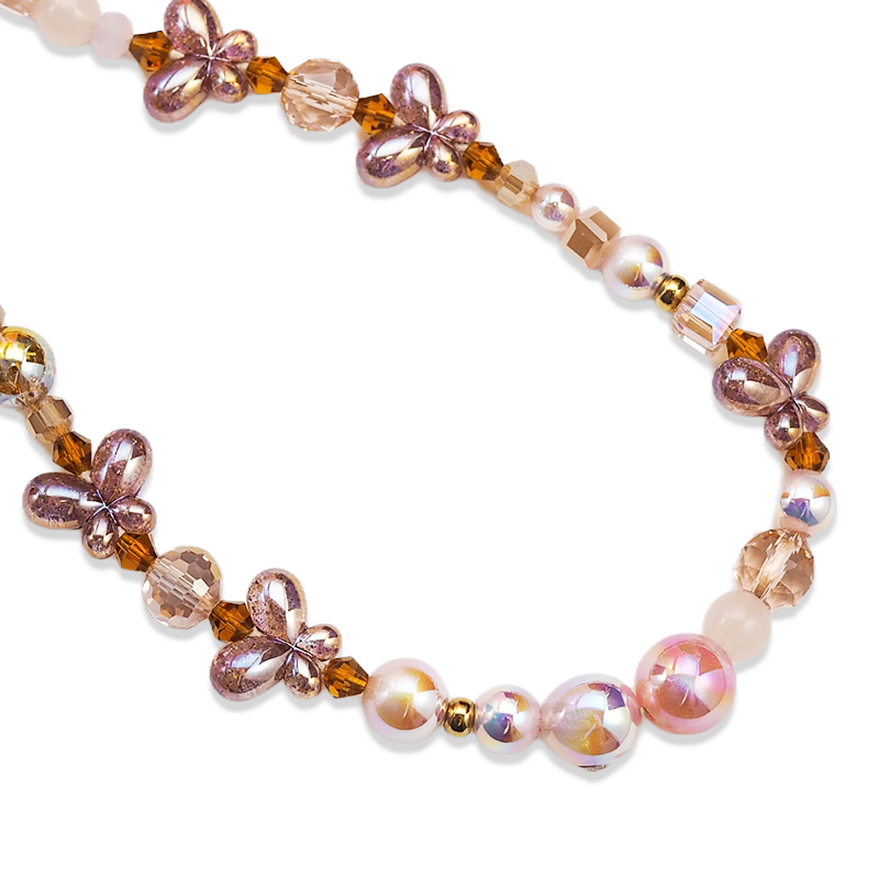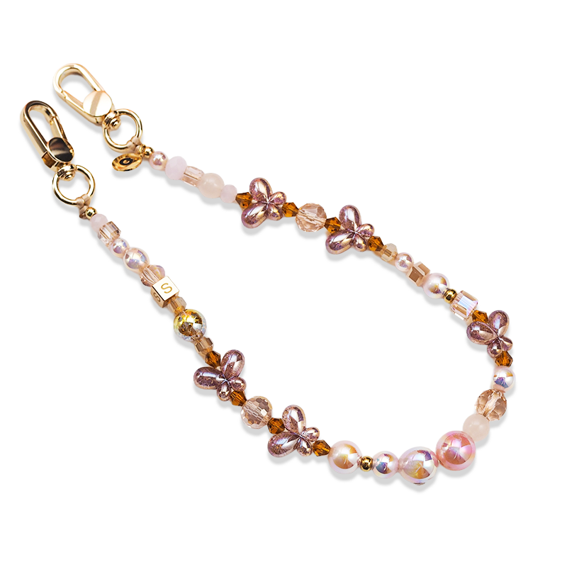 فراشة وردية مرحة متلألئة، تشع ببريق ذهبي، أنيقة ومذهبة، أي أميرة ثراء ستقاومها؟