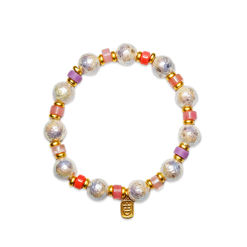 نور اللؤلؤ الشرقي الناعم يلتقي بجماليات الهندسة العربية، ليصنع تحفة طاقة أنيقة للمعصم.