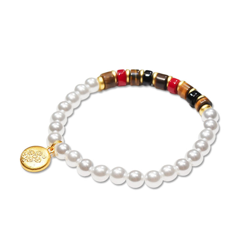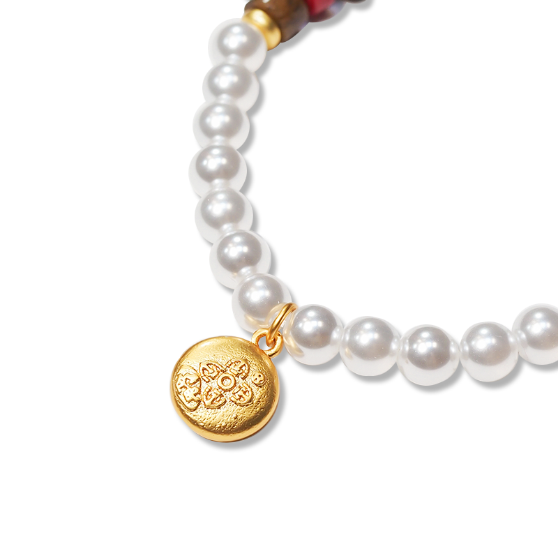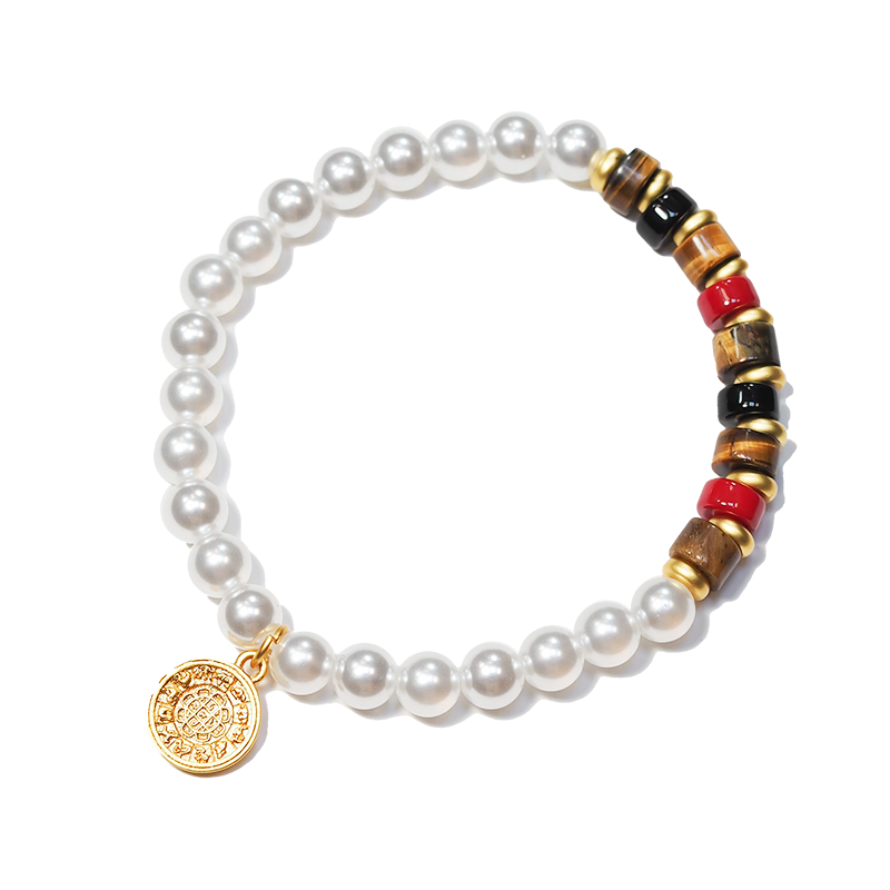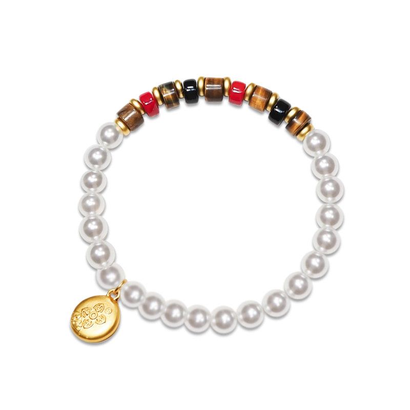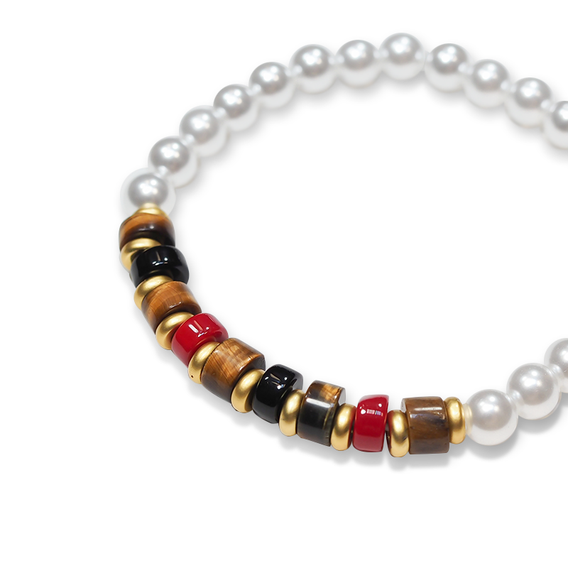نور اللؤلؤ الشرقي الناعم يلتقي بجماليات الهندسة العربية، ليصنع تحفة طاقة أنيقة للمعصم.
