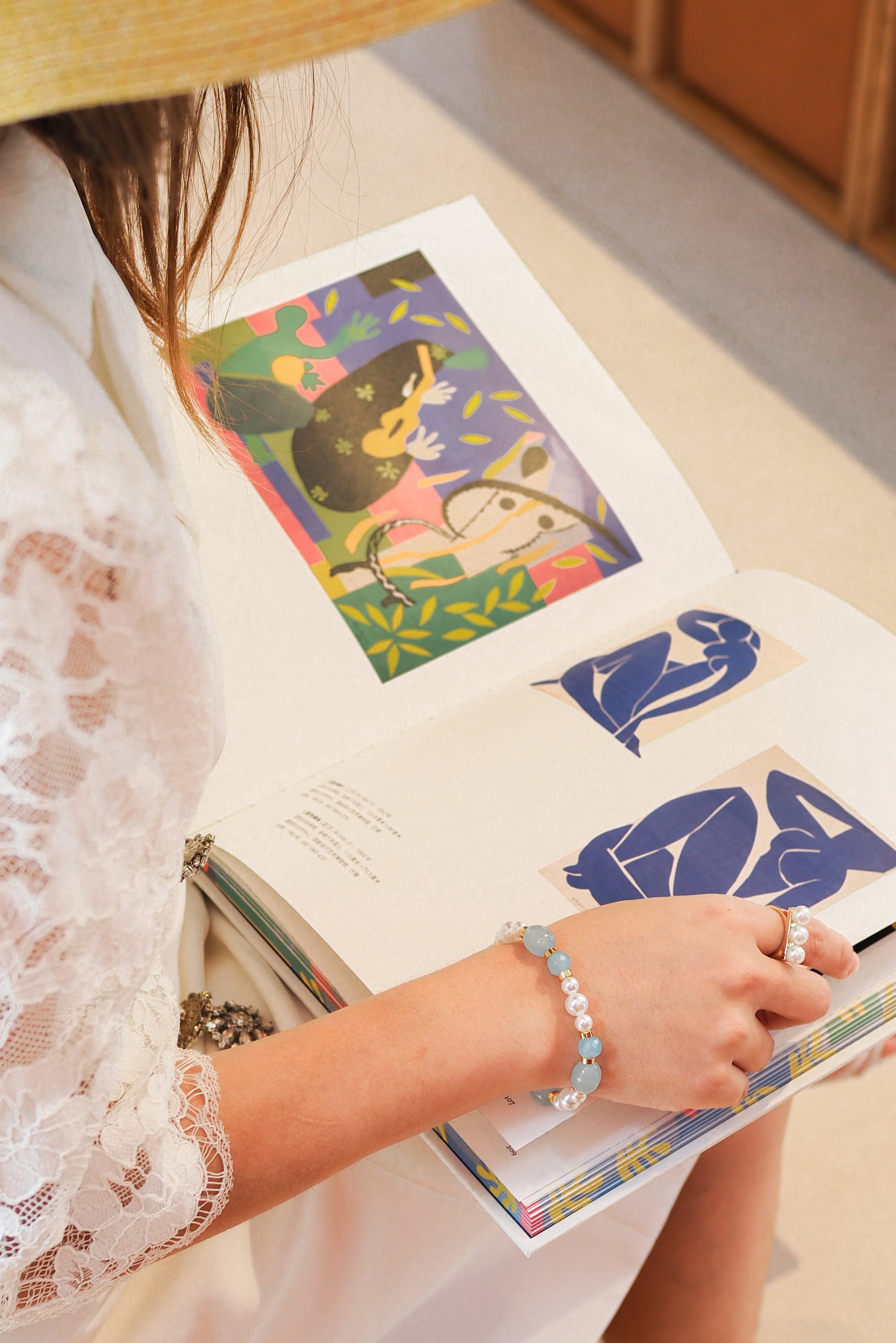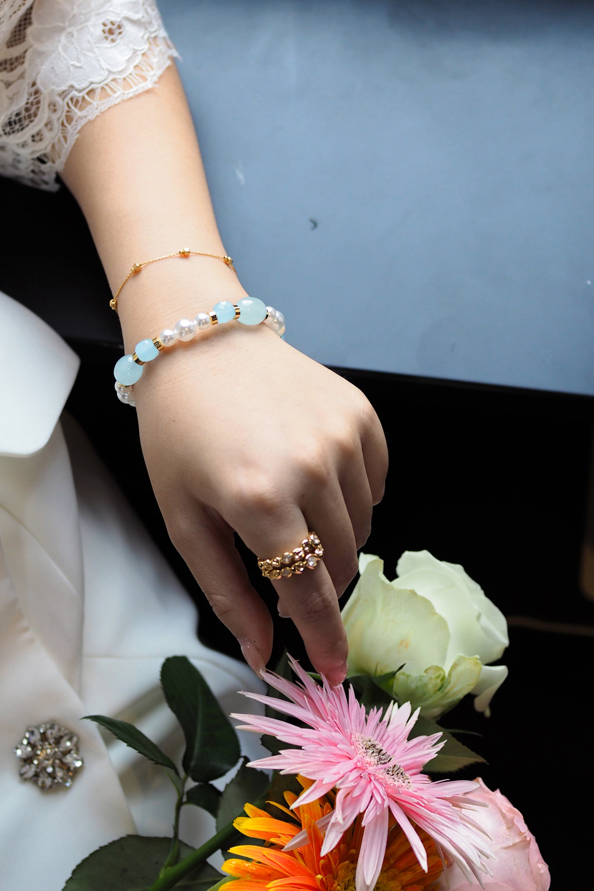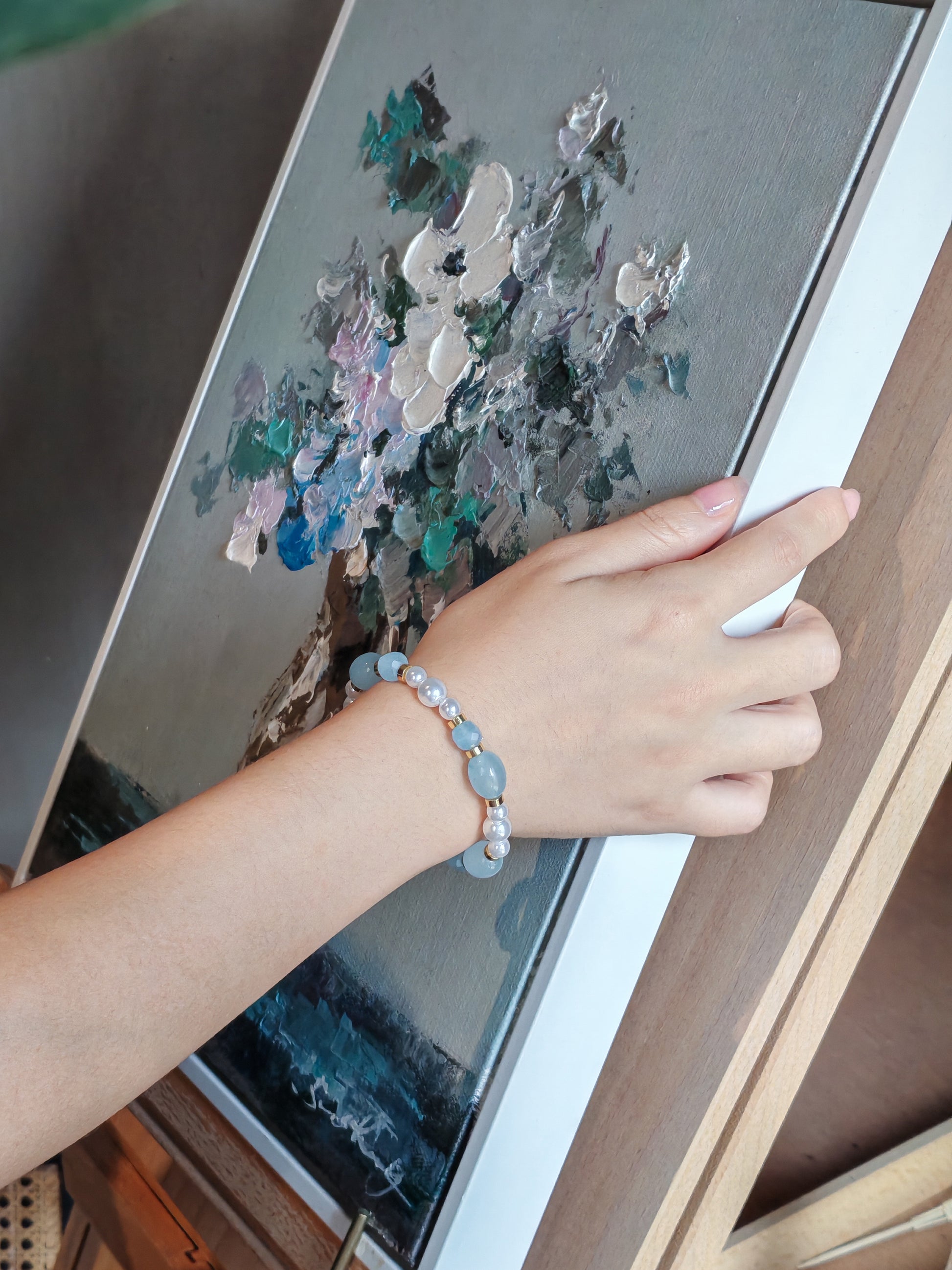 نور اللؤلؤ الشرقي الناعم يلتقي بجماليات الهندسة العربية، ليصنع تحفة طاقة أنيقة للمعصم.